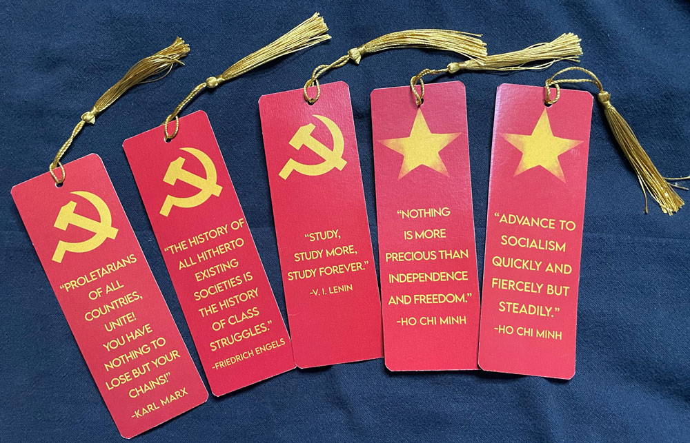 A set of five beautiful bookmarks designed by EJ and Luna, featuring portraits and quotes from your favorite comrades! Designs include: